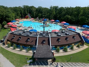 - Splash Pads & Toddler Pools designed for younger children, plus a deep main pool for older kids and adults